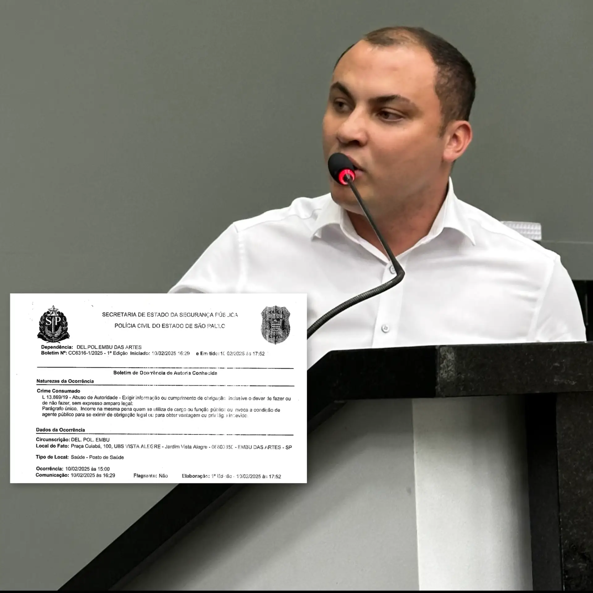 Era para ser uma simples fiscalização, mas o que aconteceu na Unidade Básica de Saúde (UBS) Vista Alegre, na tarde de segunda-feira, 10 de fevereiro de 2025, escancarou uma crise silenciosa que assola os bastidores da política de Embu das Artes. O que era para ser um procedimento rotineiro se transformou em um embate de forças, gerando acusações de abuso de poder, intimidação e até um Boletim de Ocorrência.