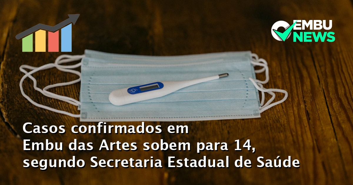 A Secretaria Estadual de Saúde de SP atualizou as estatísticas de confirmado no coronavírus e o número confirmados em Embu das Artes subiu para 14 casos.